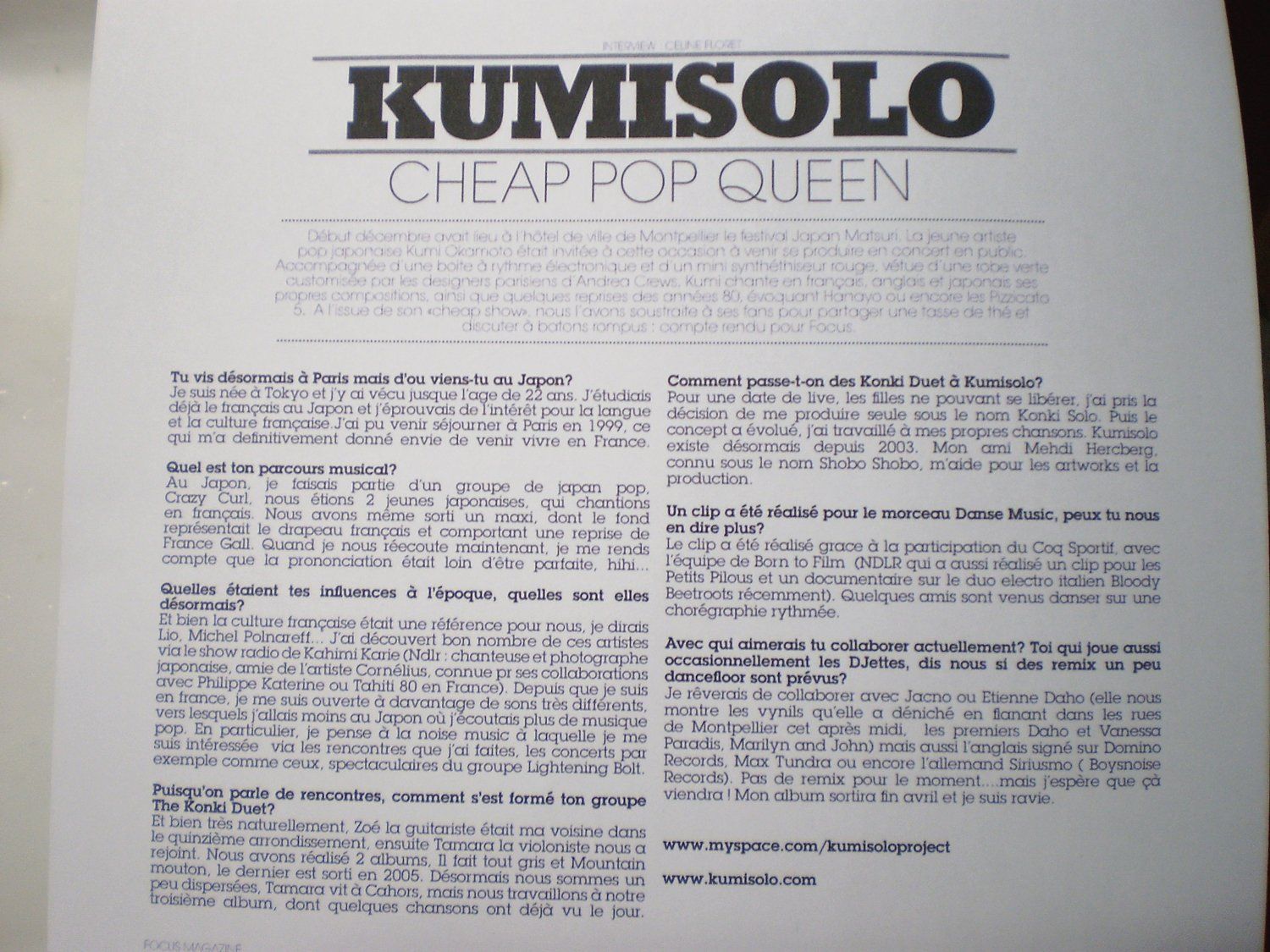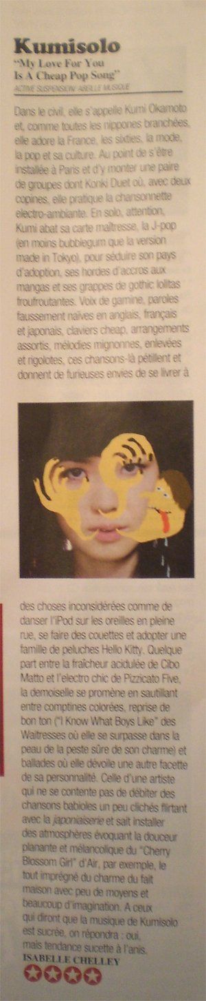 Once there, she plays the baker like Kiki the little witch, sells clothes to Parisians, while taking film lessons to dissect all the charm of the New Wave. But she didn't come alone from Japan, she also brought with her all the music she had in mind. She becomes one of the three daughters of the Konki duet, electrifying pop, where Japanese, French and English mingle and mingle. Then Kumi transformed into Kumisolo, to perform on her own a heady music rocked by various inspirations ranging from Bob Dylan to Elli and Jacno. Constantly evolving, Kumi is everywhere at the same time.